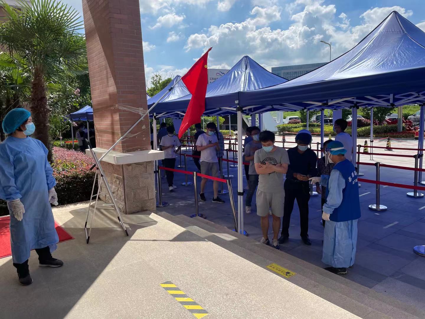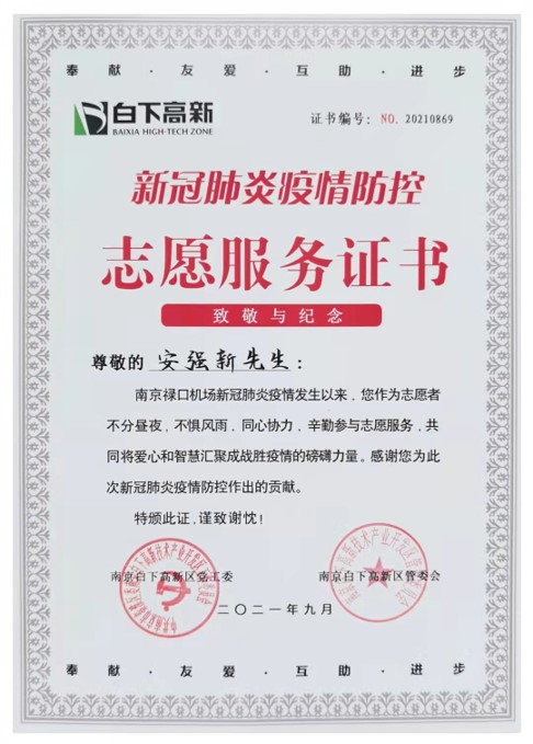 2021年8月5日,南京市秦淮區(qū)白下高新區(qū)行政服務(wù)中心核酸采樣點(diǎn)開展第五輪核酸檢測(cè)采樣,麥德材料市場(chǎng)總監(jiān)安強(qiáng)新先生積極參加黨員志愿者活動(dòng),“秦淮河畔黨旗紅,抗疫一線當(dāng)先鋒”,在現(xiàn)場(chǎng)承擔(dān)志愿者服務(wù)工作,引導(dǎo)檢測(cè)隊(duì)伍,查驗(yàn)蘇康碼,在35℃以上的高溫下堅(jiān)持六個(gè)小時(shí),順利完成任務(wù)。
