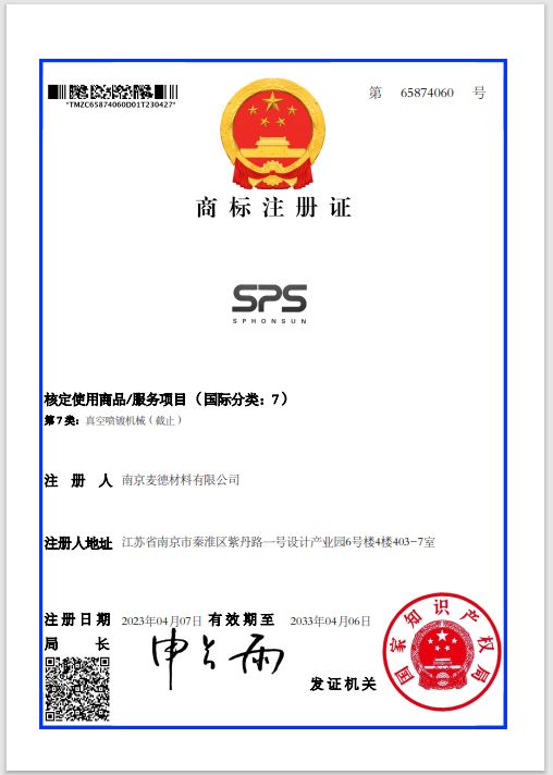 打造以專利做為公司的矛,商標(biāo)做為公司的鎧甲的戰(zhàn)隊(duì),在科技競爭的時(shí)代筑起屬于公司核心競爭力的系列護(hù)城河。多年經(jīng)營和用心打造的兩個(gè)品牌商標(biāo):SPS 和 V-MTeck獲得批準(zhǔn)。